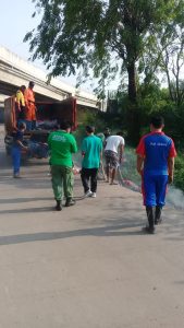 Maka itu , pada hari ini seluruh aparatur maupun Staf dari Kelurahan Telaga Asih yang di bantukan dari Kecamatan Cikarang Barat mengeruk tumpukan sambah di seputar pinggiran kalisadang tandas Adi Suryana .